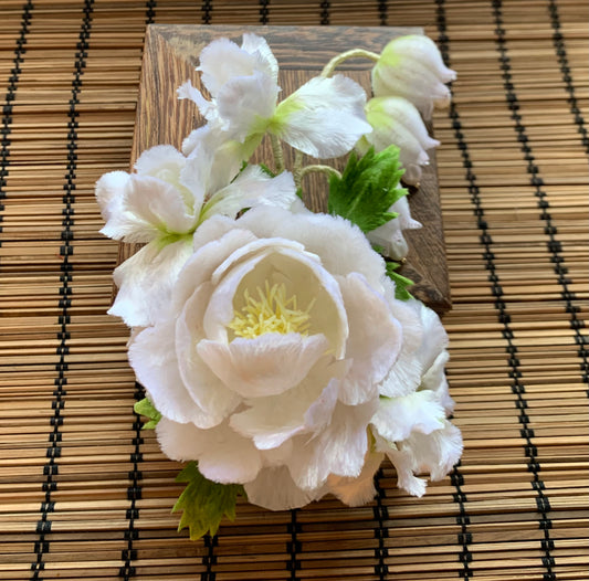 ICH-Velvet Flower-White Peony Wrist corsages for your wedding or Graduation Ball