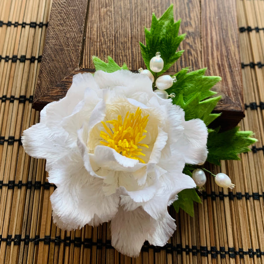 ICH-Velvet Flower-White Peony Corsage for your wedding Groom Best Man handmade